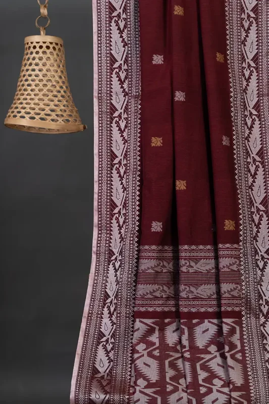 Phulia – Maroon Handwoven Saree with Lustrous Metallic Highlights