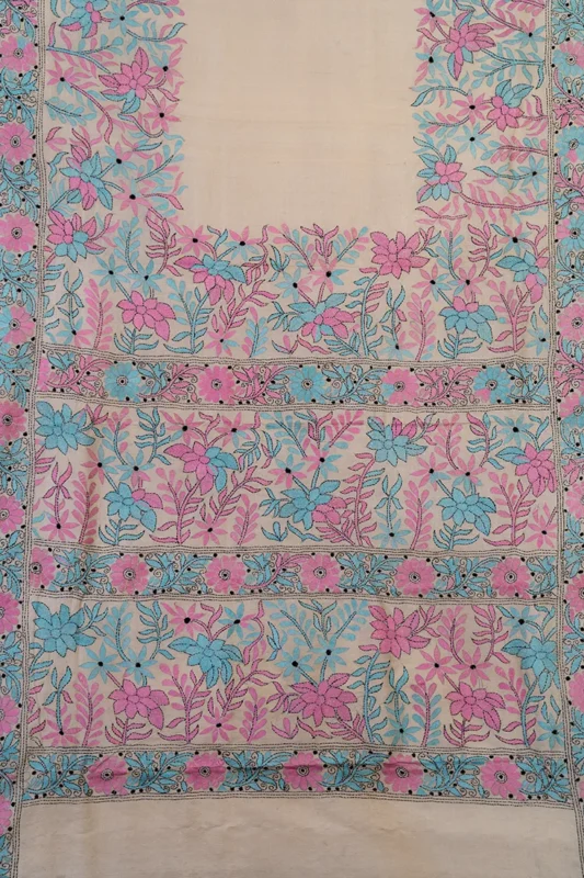 Bolpur – Hand-Stitched Cream Beige Floral Motif Nakshi Kantha Saree