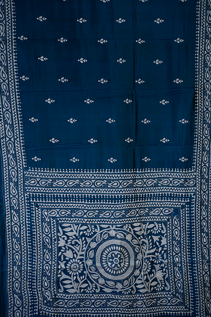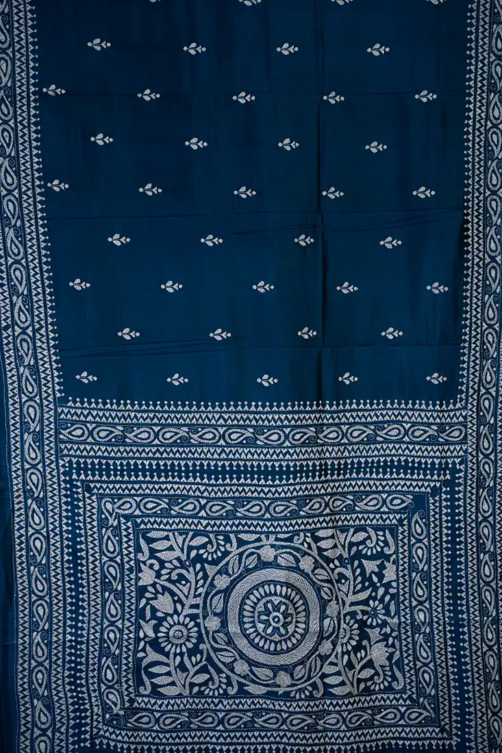 - Design: Intricate Alpona Motif Nakshi Kantha Embroidery
