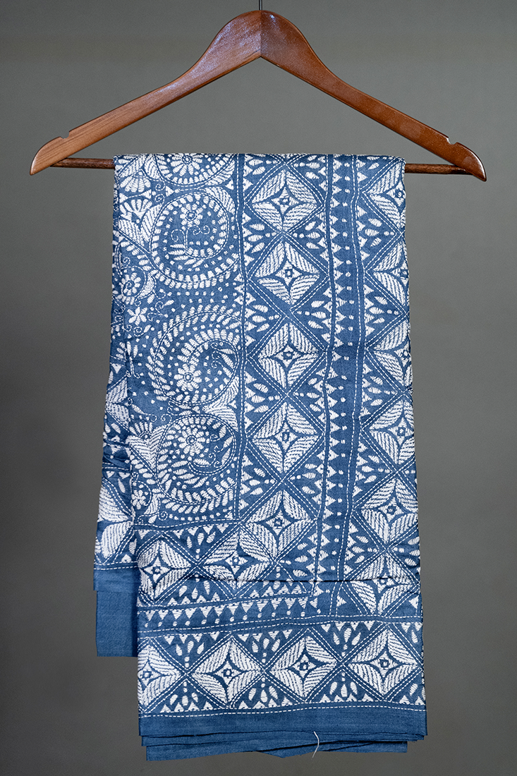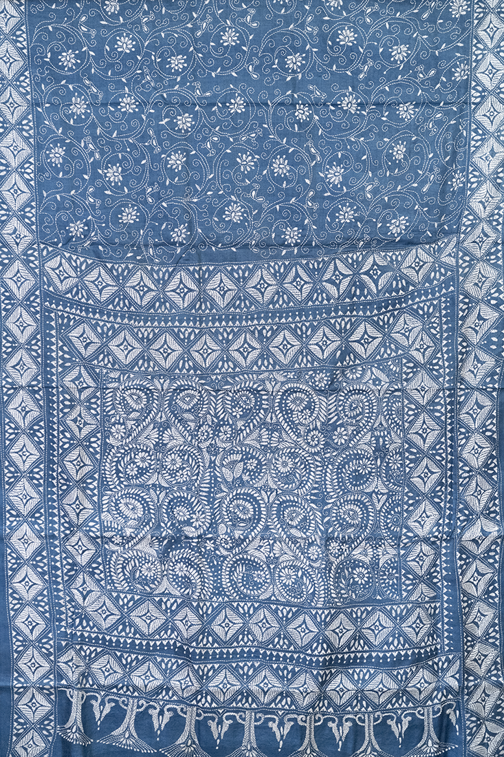 - Design: Intricate Alpona Motif Nakshi Kantha Embroidery