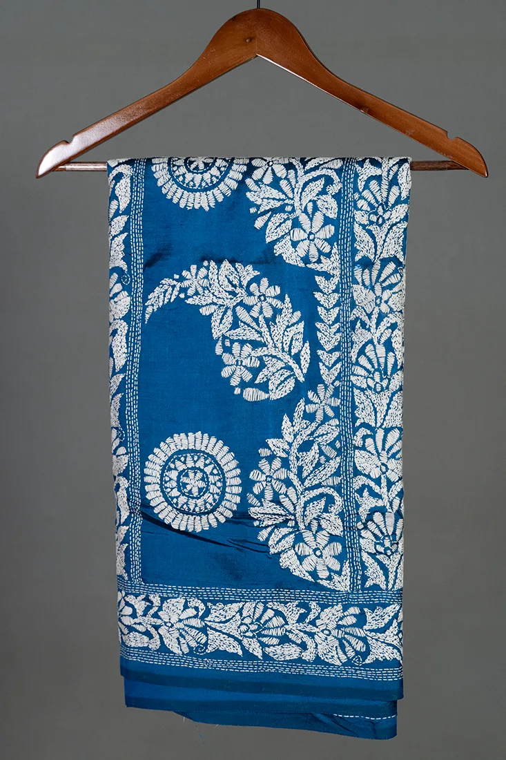 Bolpur – Hand-Stitched Electric Blue Floral Motif Nakshi Kantha Saree