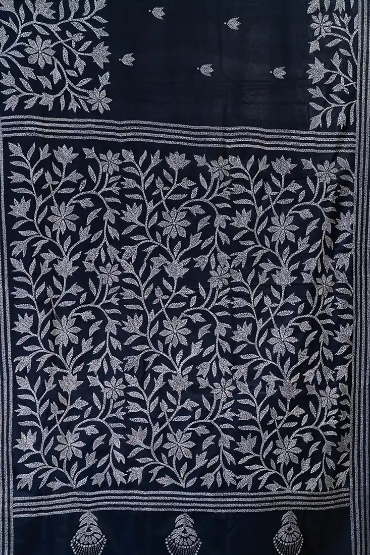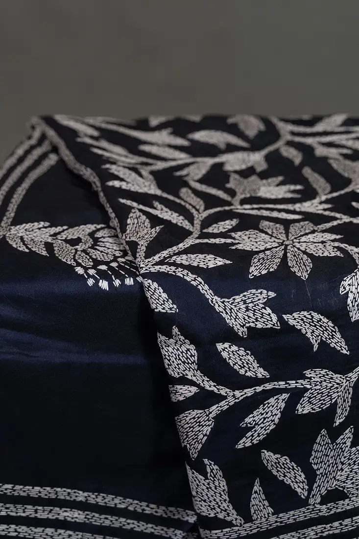 Bolpur – Hand-Stitched Dark Blue Leafy Vine Nakshi Kantha Saree Bolpur – Hand-Stitched Dark Blue Leafy Vine Nakshi Kantha Saree