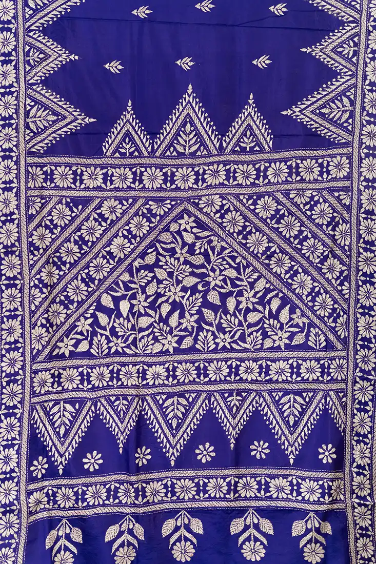 Bolpur – Hand-Stitched Indigo Blue Floral Nakshi Kantha Saree