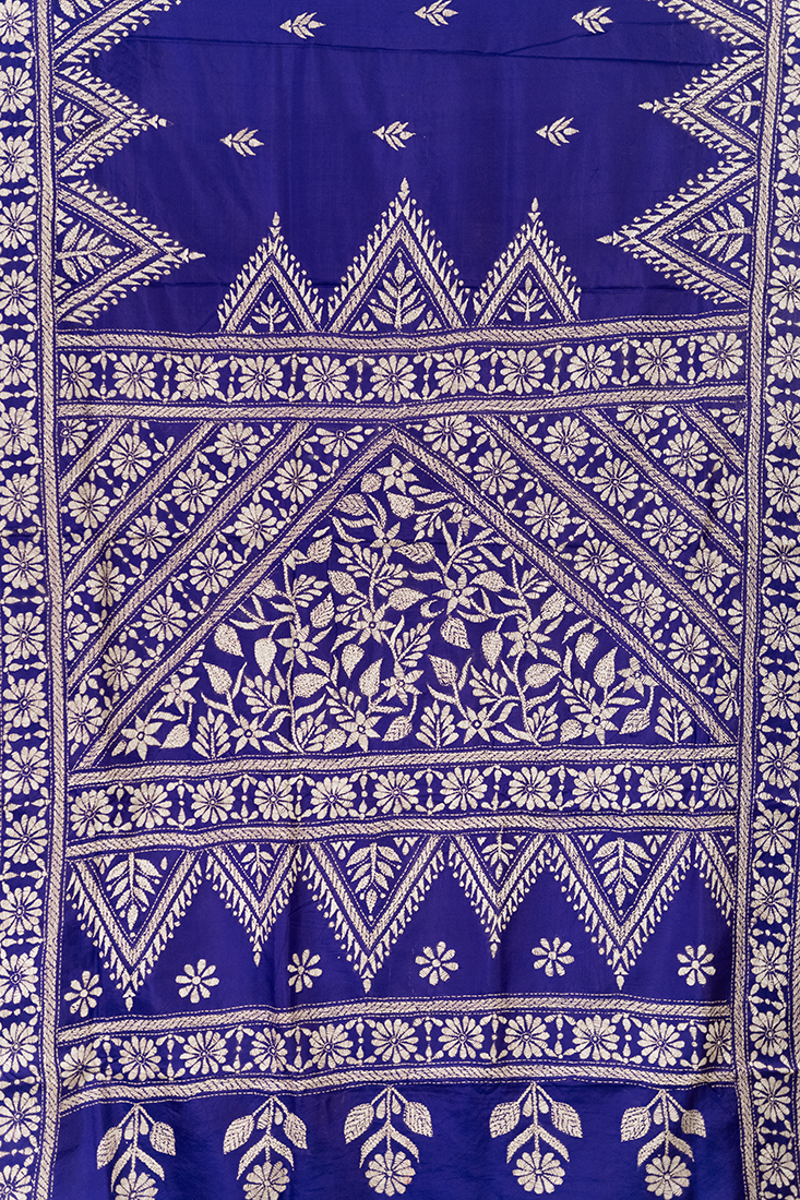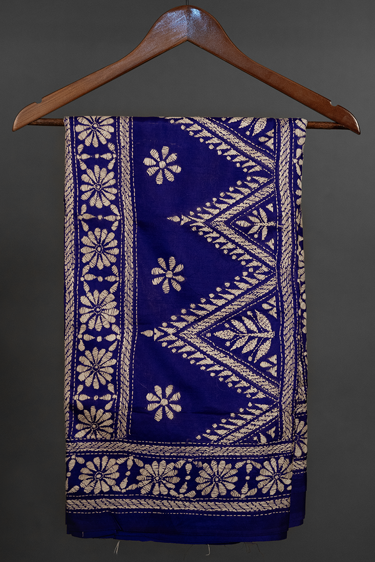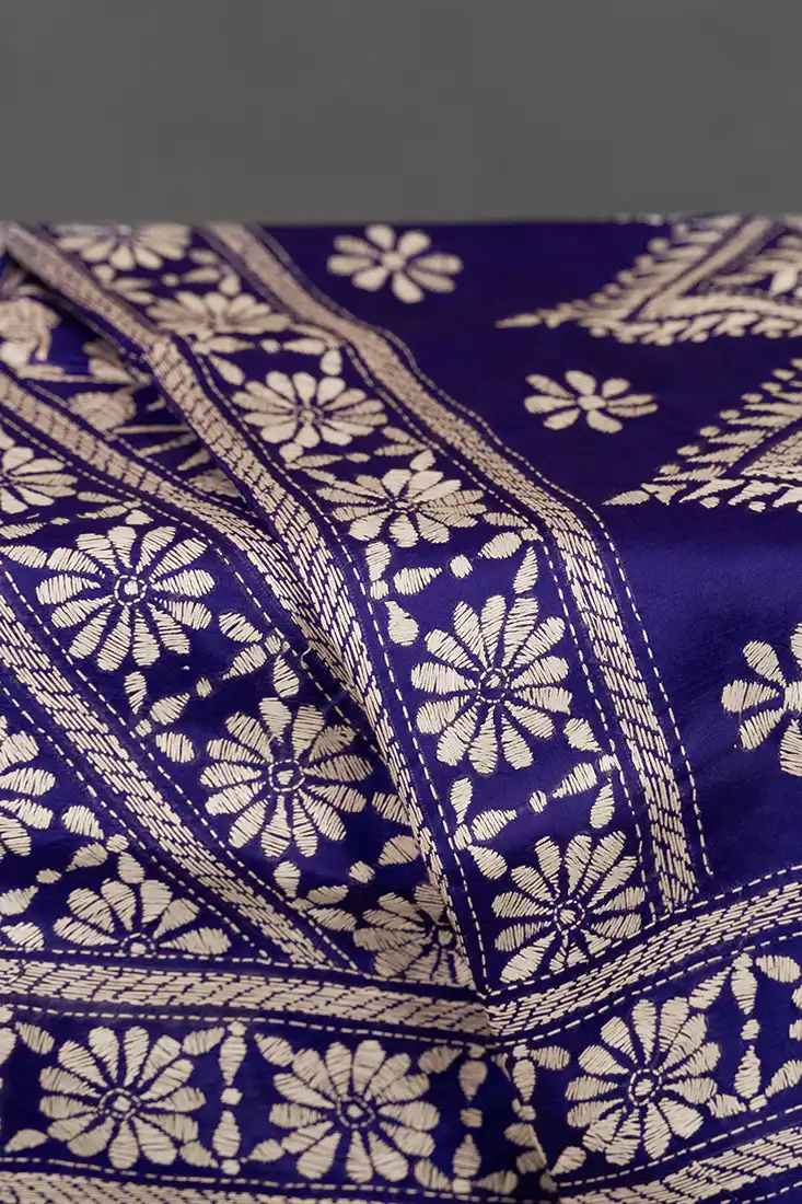 Bolpur – Hand-Stitched Navy Blue Flower Motif Nakshi Kantha Saree