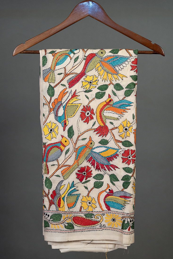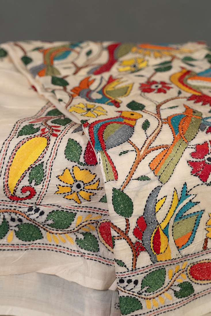 - Design: Elegant Bird Motif Nakshi Kantha Embroidery