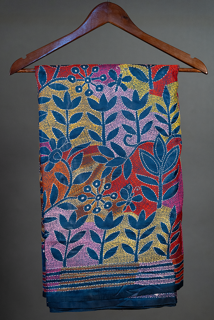 • Design: Intricate Floral Reverse Kantha Embroidery