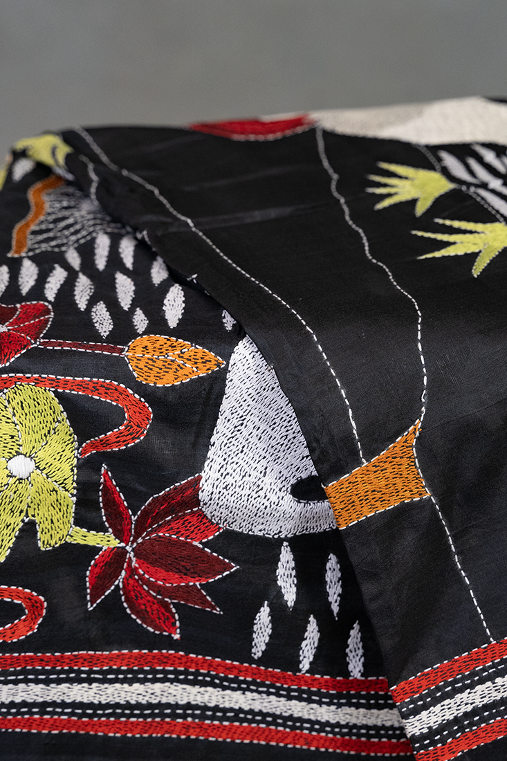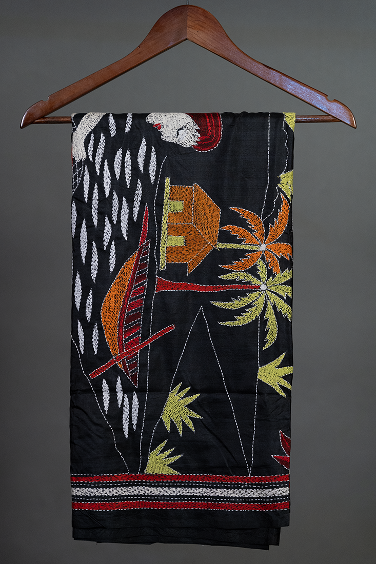 Bolpur – Hand-Stitched Black Fisherman Theme Nakshi Kantha Saree