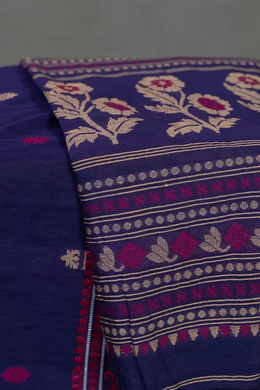 Phulia – Deep Violet Modern Floral Design Pure Cotton Handloom Saree