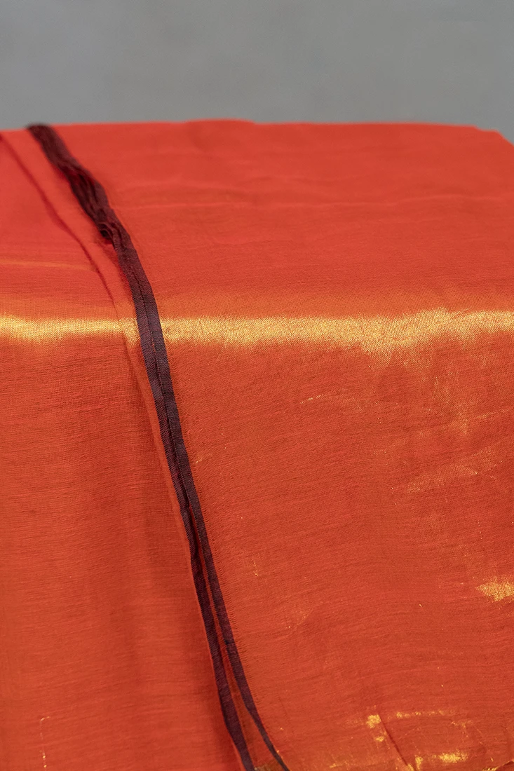 Phulia – Handwoven Burnt Orange Raga Tissue Silk Saree