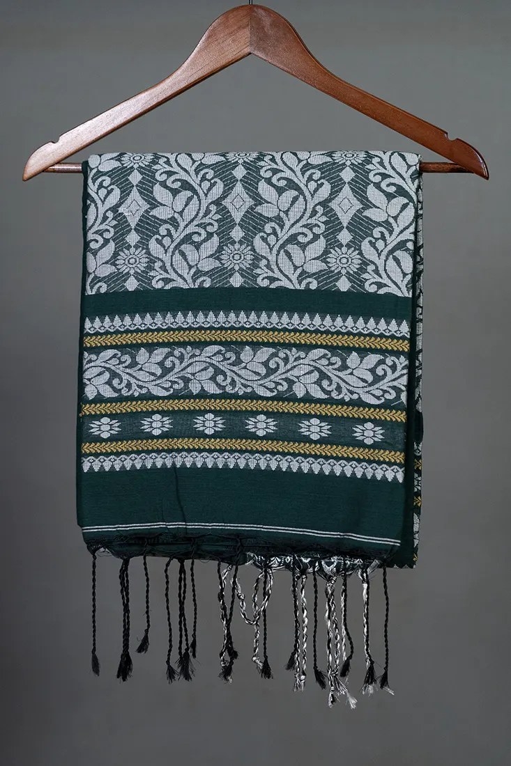 Phulia – Green and White Floral Design Pure Cotton Handloom Saree