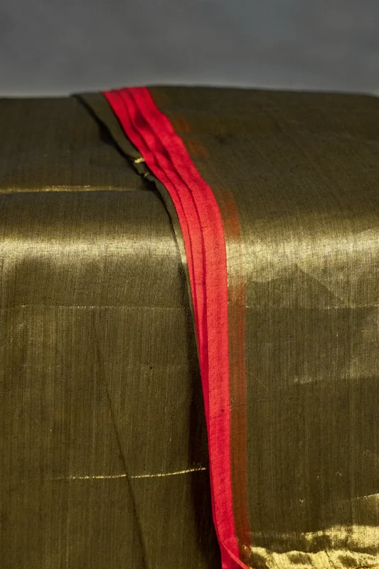 Phulia – Handwoven Olive Green Raga Tissue Silk Saree Phulia – Handwoven Olive Green Raga Tissue Silk Saree