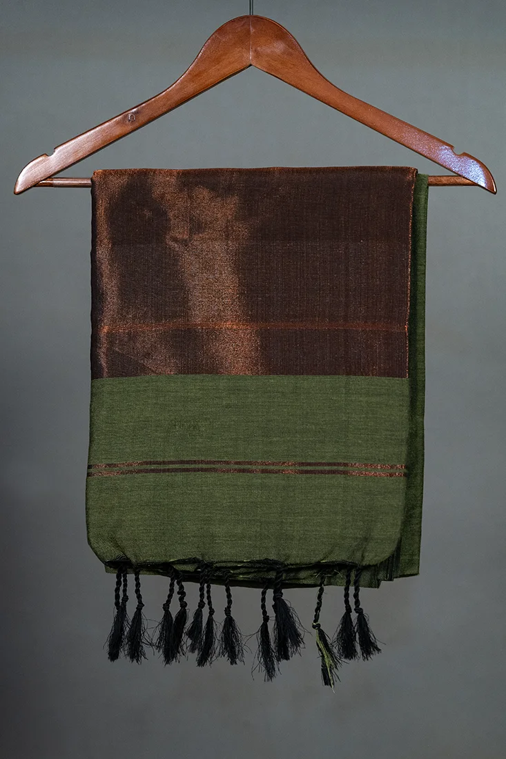 Phulia – Moss Green Handwoven Saree with Lustrous Metallic Highlights