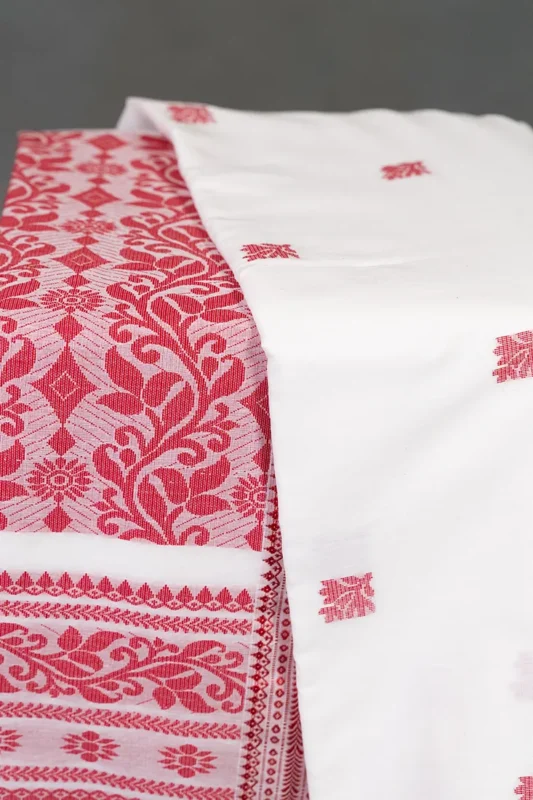 Phulia – White and Red Floral Design Pure Cotton Handloom Saree