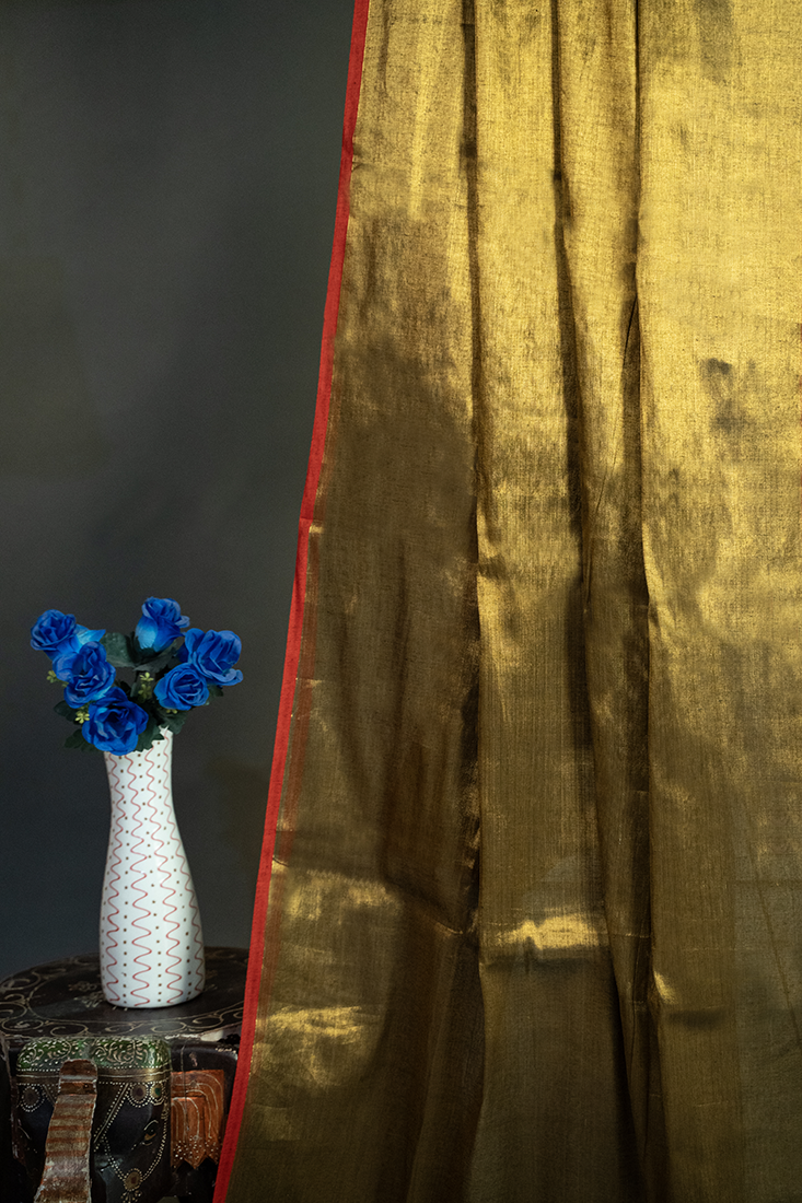 Phulia – Handwoven Copper Gold Raga Tissue Silk Saree