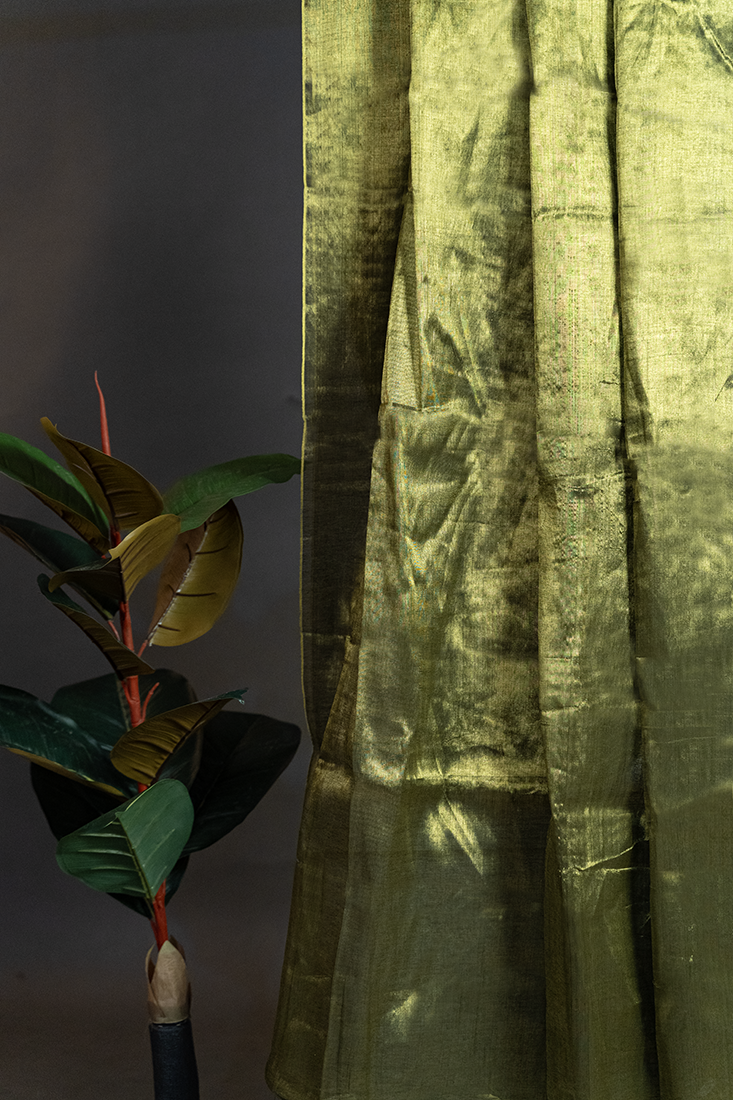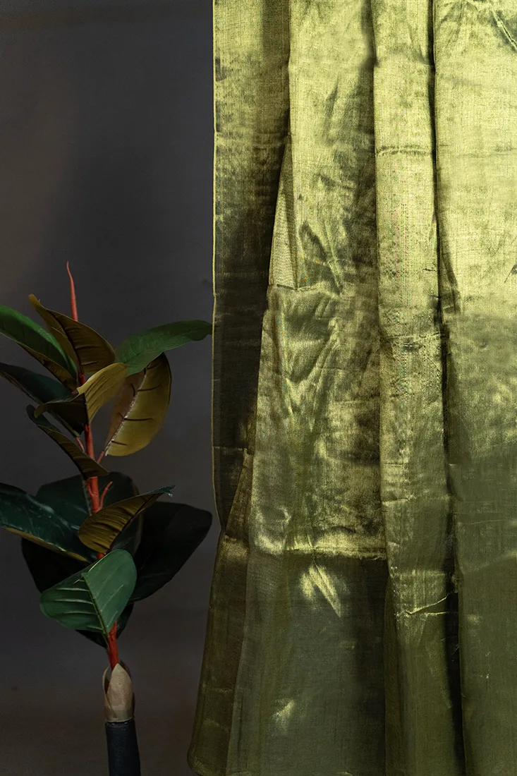 Phulia – Handwoven Olive Green Raga Tissue Silk Saree