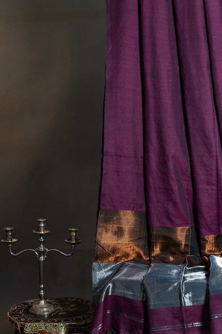 Phulia – Wine Handloom Saree with Lustrous Metallic Highlights