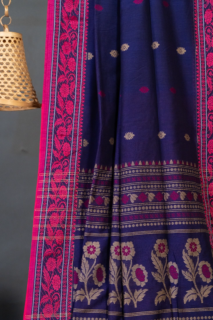 Phulia – Dark Blue Modern Pure Khadi Cotton Handloom Saree