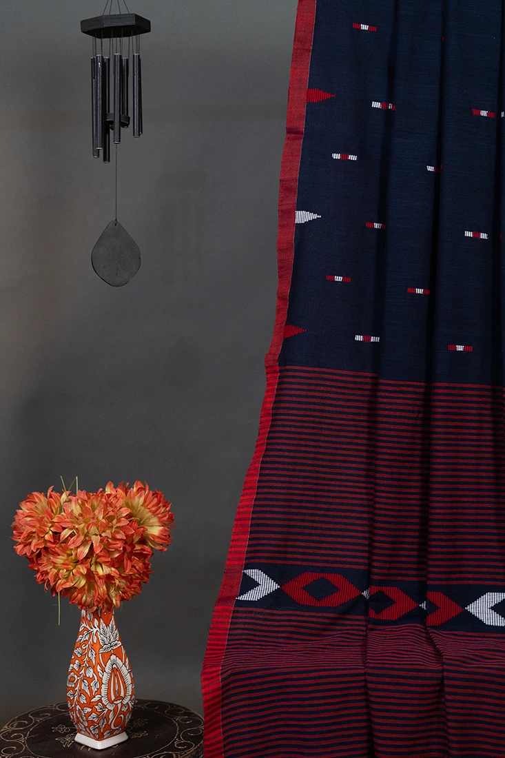 Phulia – Navy Blue Modern Geometric Design Pure Cotton Handloom Saree