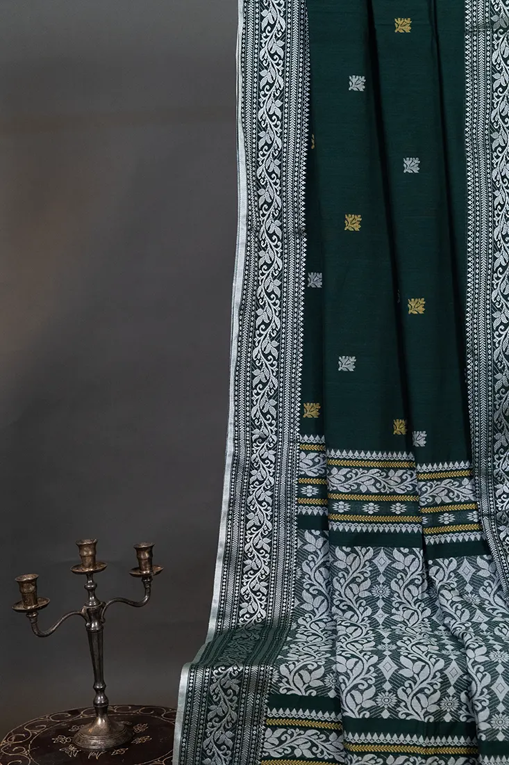 Phulia – Dark Green Modern Floral Design Pure Cotton Handloom Saree